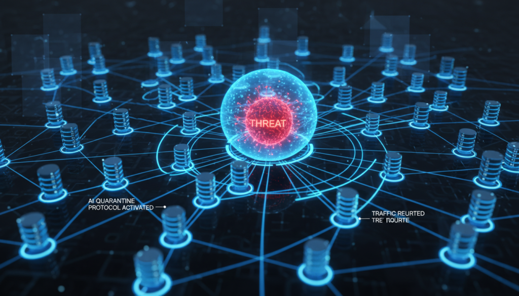 Modern platforms (such as those from Darktrace or Palo Alto Networks) don’t just alert; they act. If an AI detects a “Zero-Day” payload moving laterally through a cloud environment, it can instantly isolate the affected container, revoke the compromised identity’s tokens, and trigger a micro-segmentation policy—all in milliseconds.