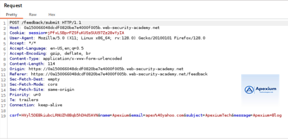 - Intercept the Request:Launch Burp Suite Professional and enable interception. Submit the feedback form to generate a request that will appear in the Proxy tab.