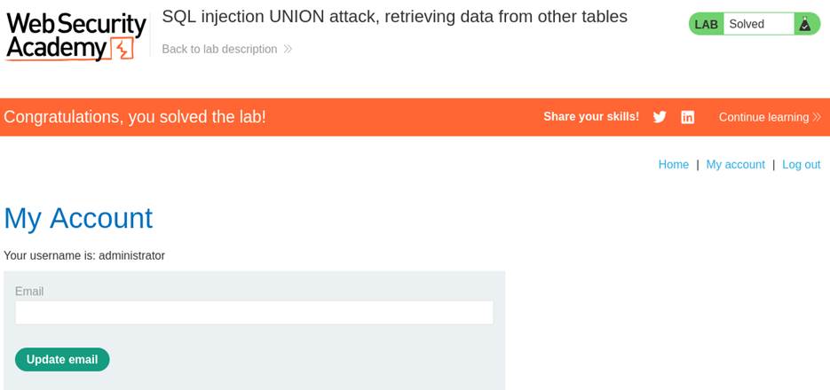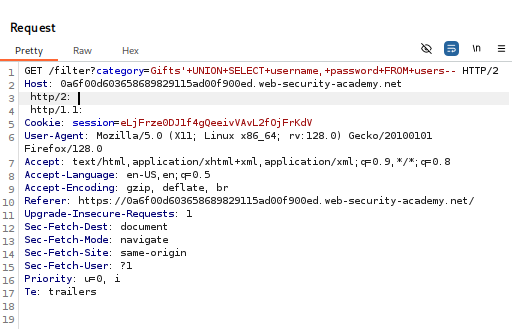 This lab demonstrates how a UNION-based SQL injection can bypass filters and extract sensitive data. Always secure applications with proper coding practices and defensive measures.